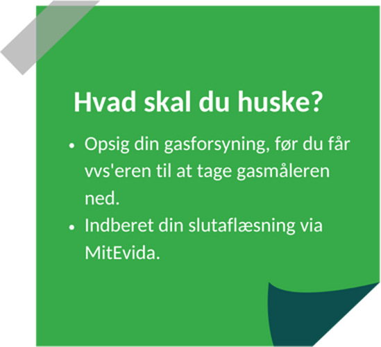 - Du skal opsige din gasforsyning, før du får vvs'eren til at tage gasmåleren ned